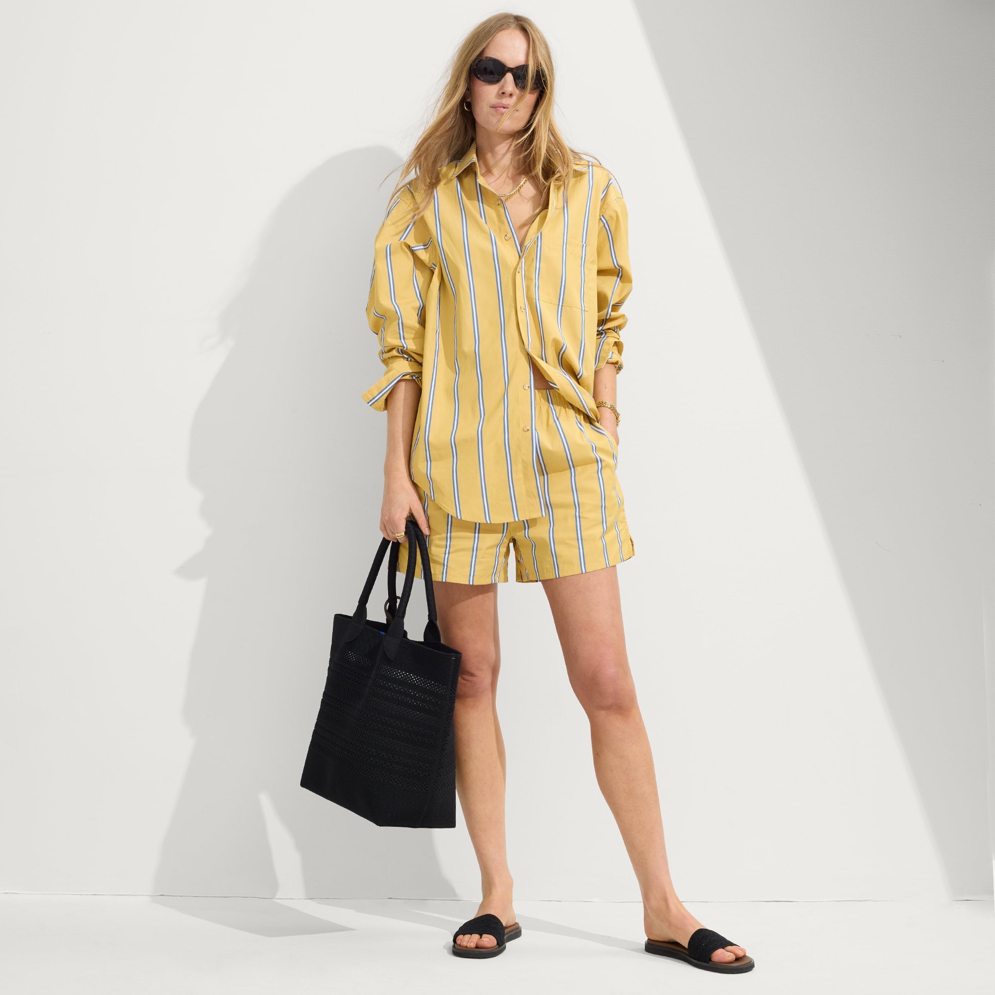 - Wrapped top handles in black fit comfortably over the shoulder.