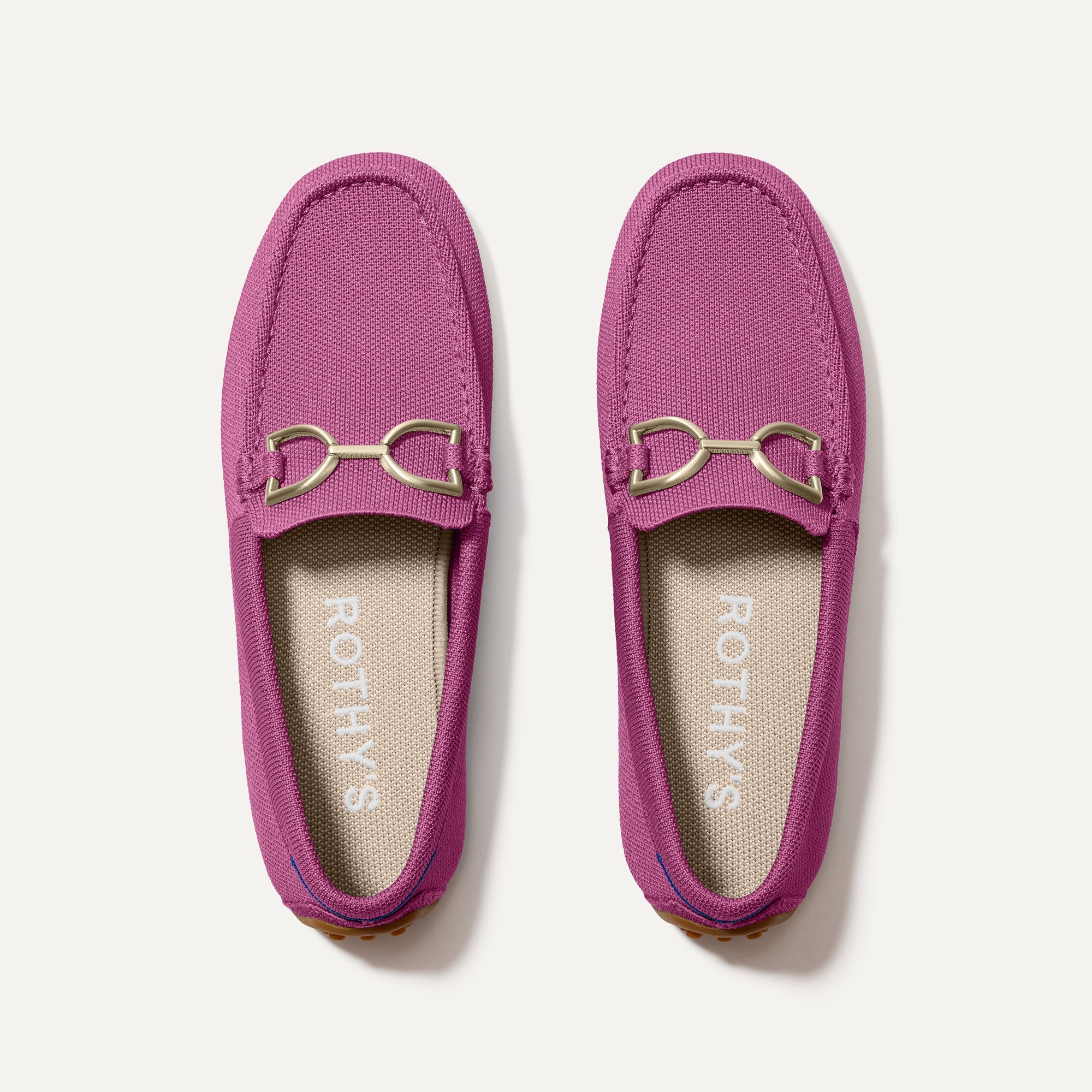 • Soft. flexible upper in mauve pink with a gold hardware signet bit on the vamp.