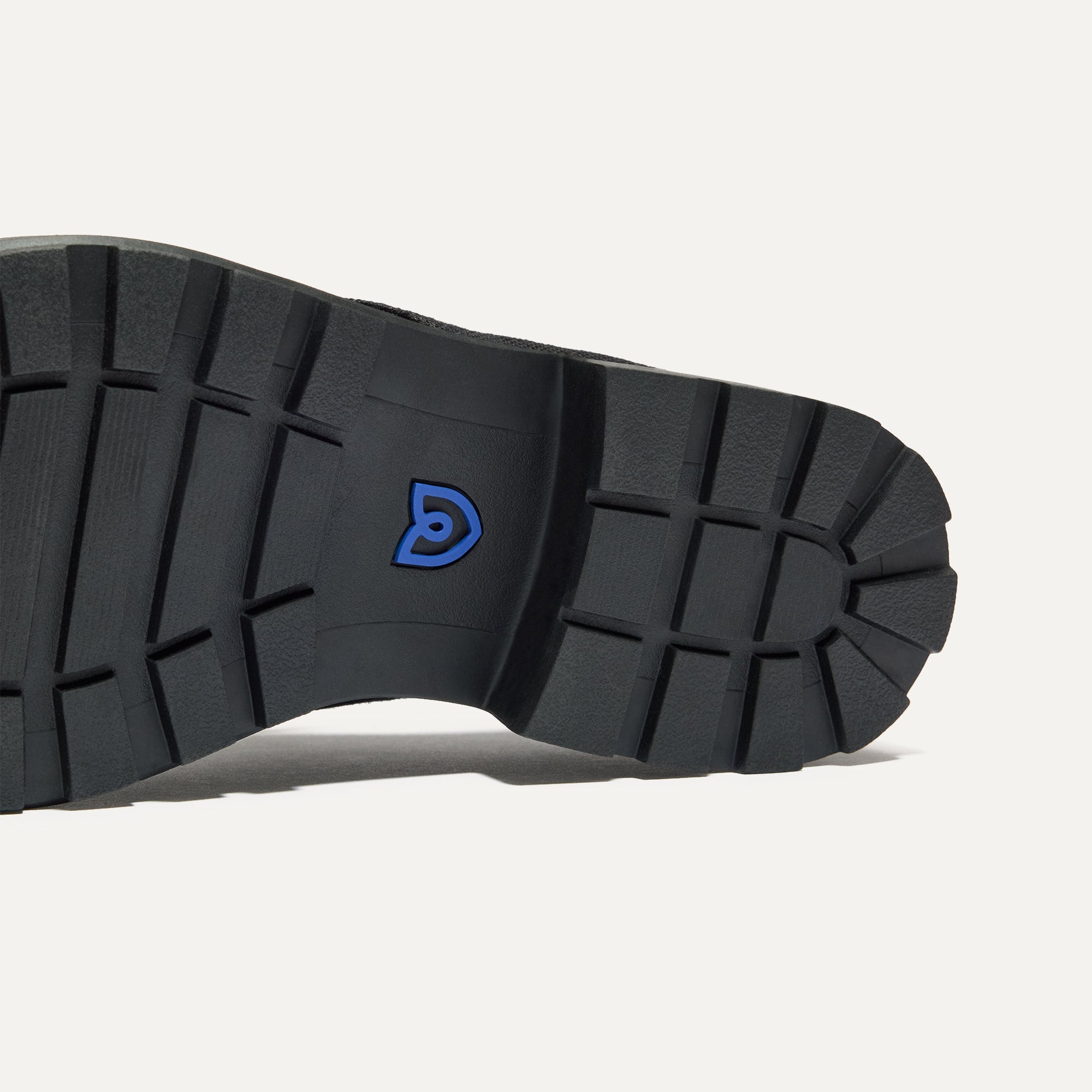 • Durable lug outsoles in black with flexible grooves for added traction.